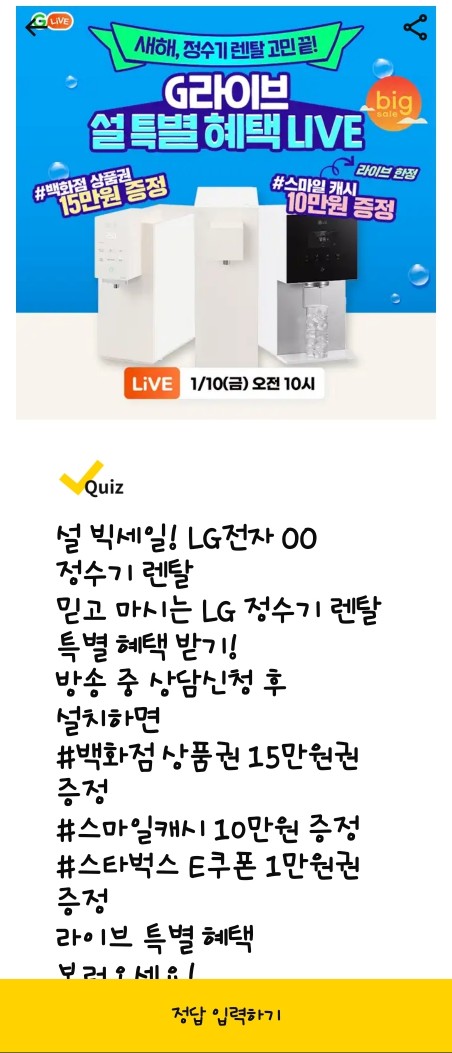 G라이브 LG전자 용돈퀴즈