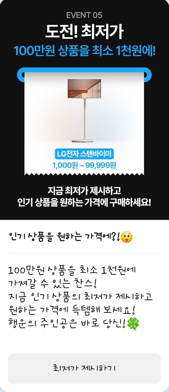 프리미엄 상품 최저가 도전 이벤트