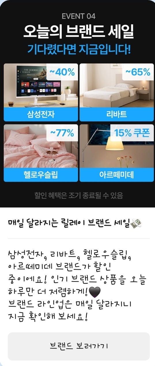 추가로 브랜드 쿠폰팩, 사은품 제공, 결제 할인 등의 혜택이 함께 제공되니 구매 전에 꼭 확인하세요!
