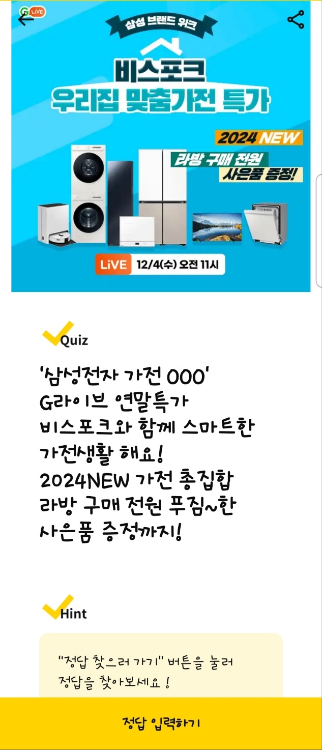 G라이브 비스포크 용돈퀴즈
