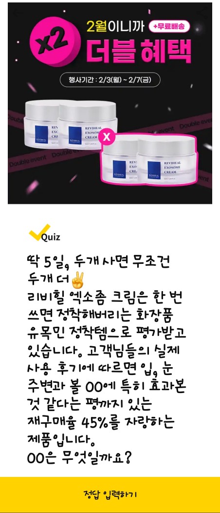 문제: 딱 5일! 두 개 사면 두 개 더! 1년에 한 번 진행되는 리비힐 엑소좀 선크림 행사에서 1개를 구매하면 1개를 추가로 받을 수 있습니다. 2월 3일부터 7일 동안 진행되며, 엑소좀 선크림 1X2개 쿠폰 적용가는 OOOOO원입니다. OOOOO은 무엇일까요? (힌트: 숫자)