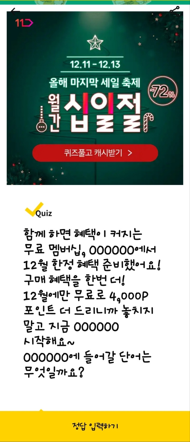 11번가 용돈퀴즈: OOOOOO에 들어갈 단어는 '패밀리플러스'입니다.