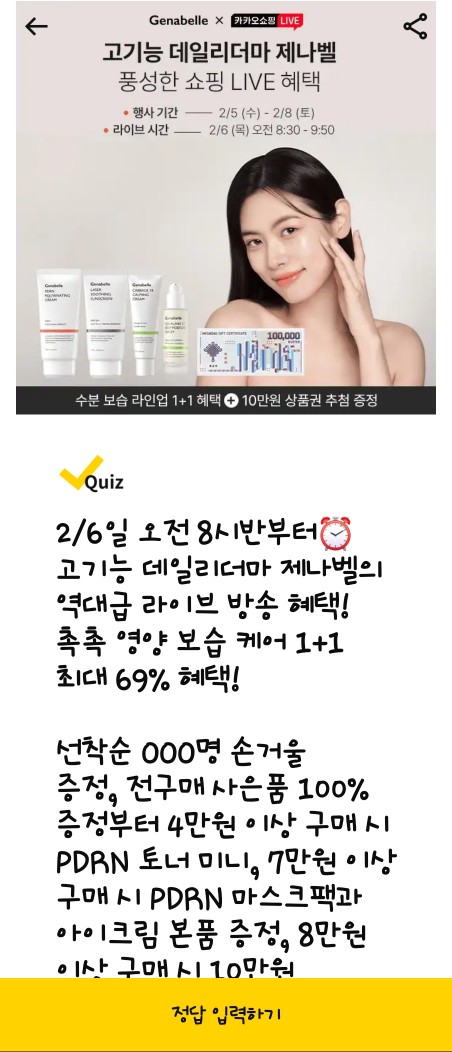 문제: 제나벨 라이브 방송에서 최대 69% 할인과 함께 선착순 OOO명 손거울 증정, 전 구매 사은품 증정 혜택을 제공합니다. OOO에 들어갈 숫자는?