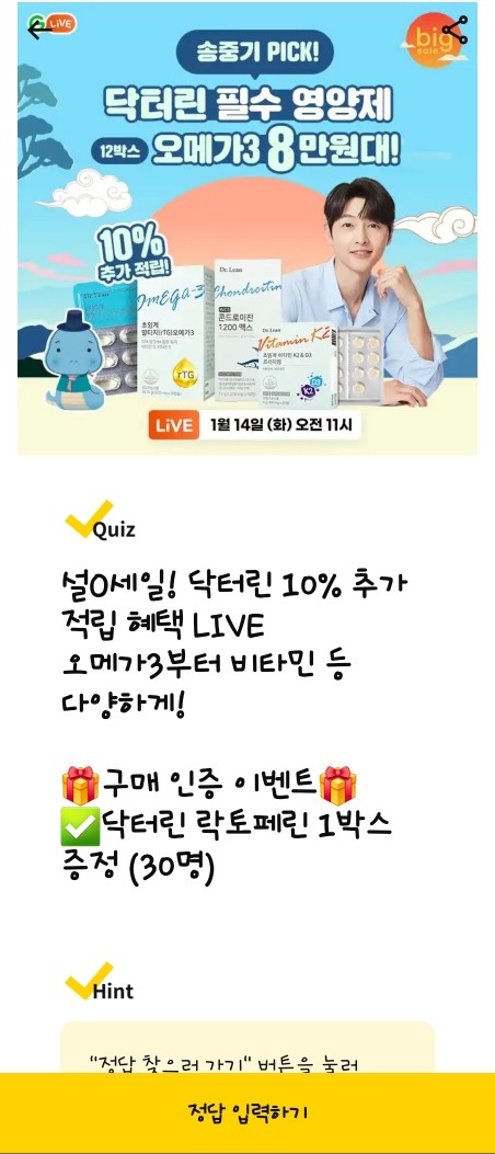 - 문제: "설O세일! 닥터린 10% 추가 적립 혜택 LIVE..."