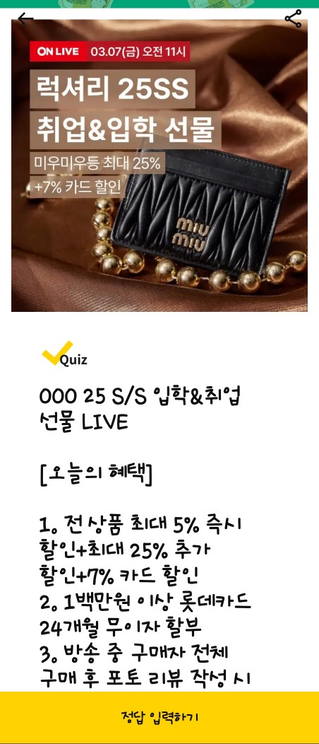 문제: OOO 25 S/S 입학&취업 선물 LIVE에서 제공하는 혜택이 아닌 것은?